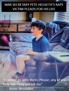 BREAKING NOW! U.S. WAR SECRETARY PETE HEGSETH’S CHILD RAPE VICTIM PLEADS FOR HIS LIFE – “I cannot go with them. Please, any of you help me. They will kill me” – Asher Neumiller