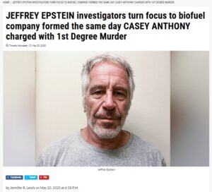 On May 20, 2020, TIMOTHY CHARLES HOLMSETH REPORTS reported, “JEFFREY EPSTEIN investigators turn focus to biofuel company formed the same day CASEY ANTHONY charged with 1st Degree Murder“.
