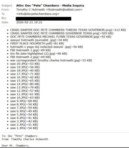 EPSTEIN ALERT!!! – ‘CLINTON BODY COUNT’ ENDS the DREAM of TEXAS GOVERNOR HOPEFUL “DOC” PETE CHAMBERS AFTER DEEP TIES TO HILLARY CLINTON, CRAIG (SAWMAN) SAWYER, MICHAEL FLYNN, and EPSTEIN CARTEL’S CHILD PORNOGRAPHY and ROVING MASKED MURDER GANGS EMERGES