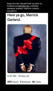 The Order/Injunction was rejected by the Broward County States Attorney Office because it was fraud, but the Order still exists under Florida Governor Ron DeSantis – is being acted upon – and was illegally used by STATE OF MINNESOTA and Governor Tim Walz to kidnap Holmseth 4 times.