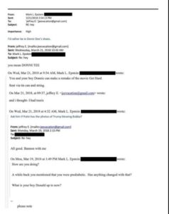 One email by Mark Epstein said, “Ask him if Putin has the photos of Trump blowing Bubba”.