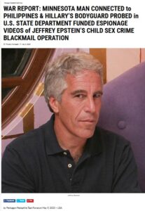 On May 9, 2025, I reported, “WAR REPORT: MINNESOTA MAN CONNECTED to PHILIPPINES & HILLARY’S BODYGUARD PROBED in U.S. STATE DEPARTMENT FUNDED ESPIONAGE VIDEOS of JEFFREY EPSTEIN’S CHILD SEX CRIME BLACKMAIL OPERATION”.