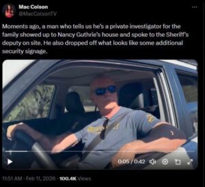 We are also examining a video that has appeared on social media of a man who pulled up to the Guthrie crime scene and reportedly identified himself as the private investigator of the family. We see physical similarities in the man and Craig Sawyer but cannot confirm at this time.