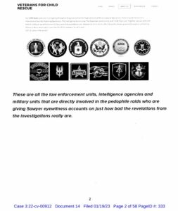 The CIA operation comprised of “Characters, Illusions, and Actors” as described by Wood had long since been exposed as paramilitary groups and rogue federal agencies working with foreign intelligence that included VETERANS FOR CHILD RESCUE INC which, along with their declared Tier 1 Operations, had announced what Sawyer and his NGO partners called the “VIPR team” (Veterans Investigating Pedophile Rings) that were on the ground.