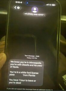 James O’Keefe, O’Keefe Media Group is reporting his group was present at the ICE-related shooting of Alex Jeffrey Pretti on Saturday, January 24, 2026 – whereupon O’Keefe reported he received a death threat by text sent by dangerous killers who ominously showed O’Keefe his very own license plate number.